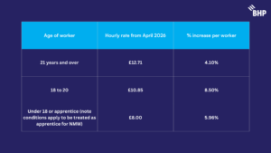 HMRC has announced that the following National Minimum Wage rates will apply to workers from pay periods commencing 1st April 2026.